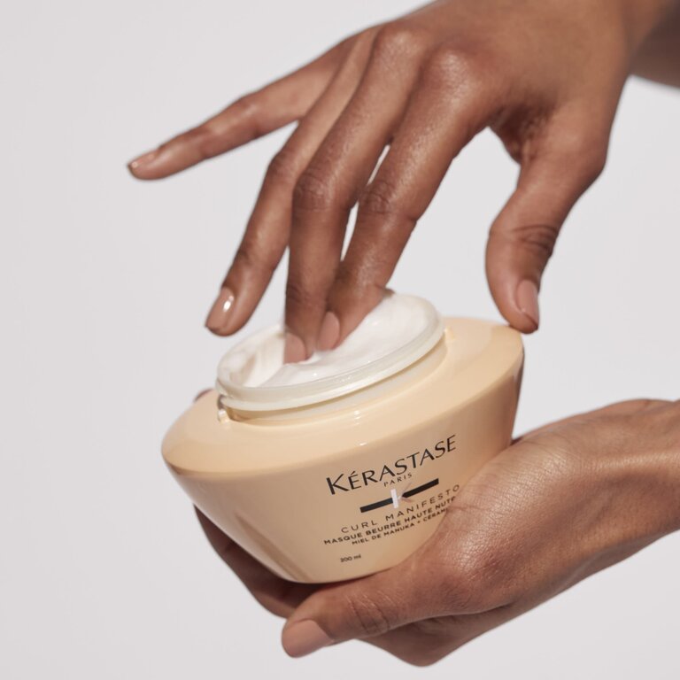 Le masque beurre haute nutrition Curl Manifesto de Kérastase est un soin extra-riche spécialement conçu pour les cheveux très bouclés ou crépus.
