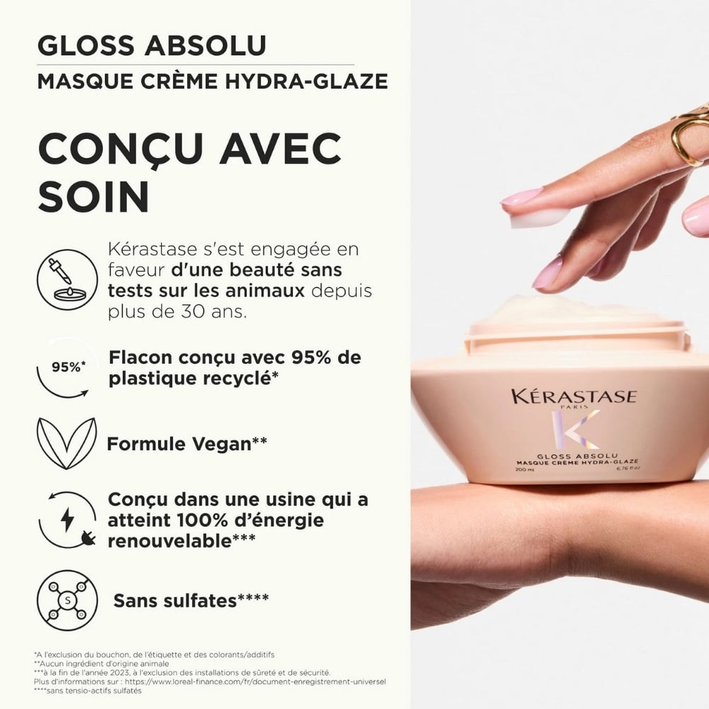 Sa texture riche et onctueuse sature la fibre d'une hydratation intense pour resserrer instantanément les écailles et révéler un fini ultra-lustré ultime. Parfaitement lissée et scellée, la matière gagne une souplesse exceptionnelle et une fluidité totale qui glisse sous le peigne sans aucune résistance.