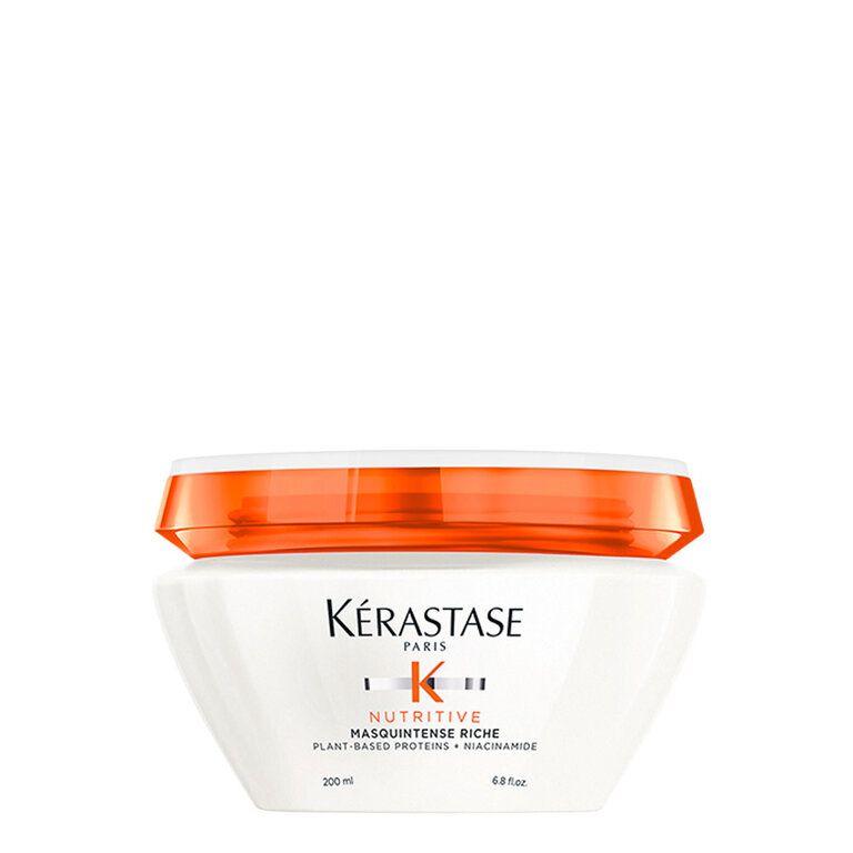 Le masque haute nutrition Masquintense Riche Nutritive de Kérastase est un soin capillaire ultra concentré et profondément hydratant, conçu pour sublimer les cheveux très secs, moyens à épais. Sa formule contient des polymères anti-sécheresse pour maintenir la maniabilité et le mouvement des cheveux, ainsi que des nutriments essentiels qui nourrissent et renforcent, le classant parmi les meilleurs masques capillaires pour cheveux épais. Sa texture crémeuse, riche et épaisse est enrichie de protéines végétales et de niacinamide qui procure instantanément souplesse, brillance et douceur.