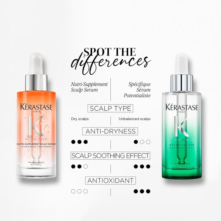 Le sérum nutritif confort intense "Nutritive Scalp Serum" de Kérastase est un soin hydratant pour les cuirs chevelus secs et inconfortables. Sa formule enrichie de Niacinamide apporte les vitamines nécessaires pour offrir une haute nutrition aux cuirs chevelus déshydratés, pour un soulagement immédiat. Ce traitement léger sans rinçage offre une texture laiteuse à absorption rapide et non grasse qui traite les cheveux secs à la source tout en apaisant les tiraillements. Son hydratation immédiate de l'épiderme offre une sensation de bien-être à l'application et une nutrition au niveau du follicule pour des cheveux nourris, brillants et sains.