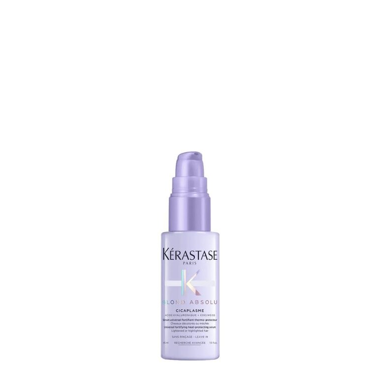 Le sérum universel fortifiant thermo-protecteur Cicaplasme Blond Absolu de Kérastase est un soin multi-bénéfices spécialement conçu pour les cheveux blonds, éclaircis ou méchés. Sa formule unique, enrichie en acide hyaluronique et en extrait de fleur d'Edelweiss, offre une protection thermique jusqu'à 450°F/230°C tout en réparant intensément les fibres capillaires endommagées.