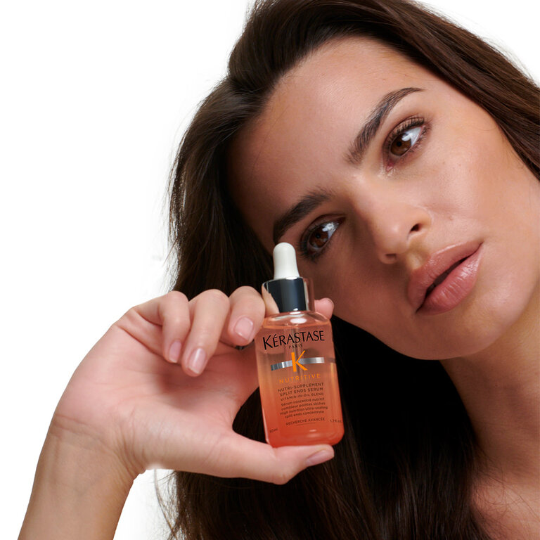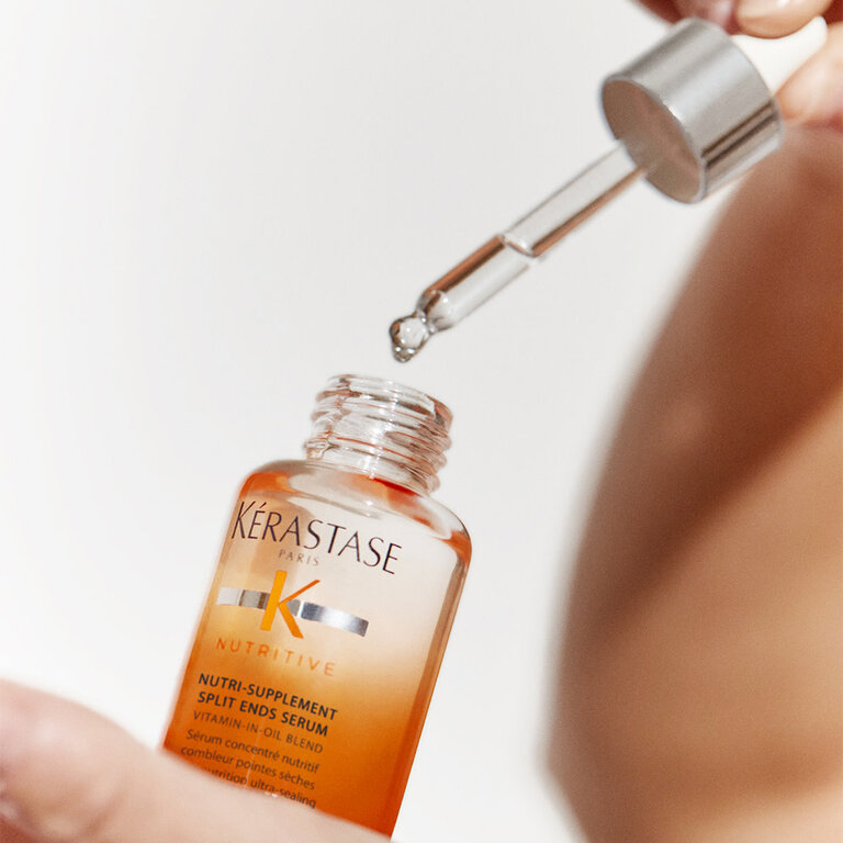 Le sérum concentré nutritif combleur de pointes sèches "Nutritive Split Ends Serum" de Kérastase est un soin ultra-nourrissant dédié spécifiquement aux pointes. Sa formule enrichie de polymère anti-sécheresse comble les zones ébréchées et aide à prévenir l'apparition de pointes fourchues. Grâce à ses nutriments essentiels, le concentré haute nutrition agit comme un bouclier pour contrer la déshydratation en renforçant les pointes et en nourrissant en profondeur. Étant le complément idéal à n'importe quelle routine de soin de cheveux, il laisse la chevelure lisse, ravivée et brillante.