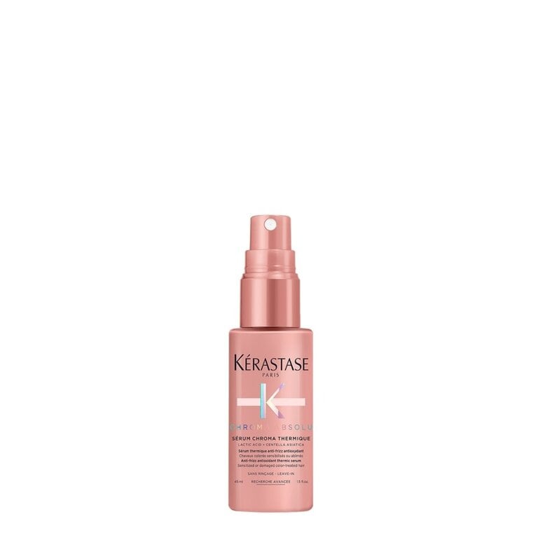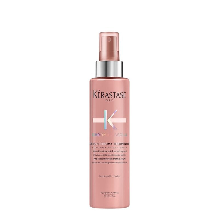 Le sérum Chroma Thermique Choma Absolu de Kérastase est un spray sans rinçage antioxydant haute performance conçu pour protéger et sublimer les cheveux colorés, sensibilisés ou abîmés. Sa formule avancée offre une protection intense contre l'humidité et les molécules d'eau aéroportées, tout en protégeant la fibre capillaire de la chaleur jusqu'à (450°F/230°C).