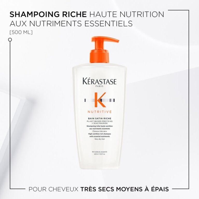 Le Bain Satin Riche Nutritive de Kérastase est un shampoing haute nutrition propriétés ultra-riche qui nettoie et restaure en profondeur les cheveux les plus assoiffés. Sa formule comprend des polymères anti sécheresse qui apportent aux cheveux une nutrition et une force intenses, ce qui en fait l’un des meilleurs shampoings pour cheveux très secs ou épais. De plus, il contient des nutriments essentiels pour nourrir et renforcer les cheveux tout en légèreté. Sa texture en gel crémeux, moussant et sans friction, fait de lui un des meilleurs shampoings pour les démangeaisons du cuir chevelu secs.