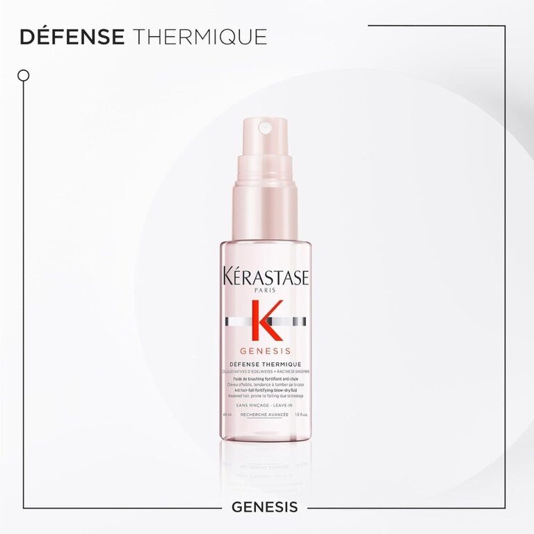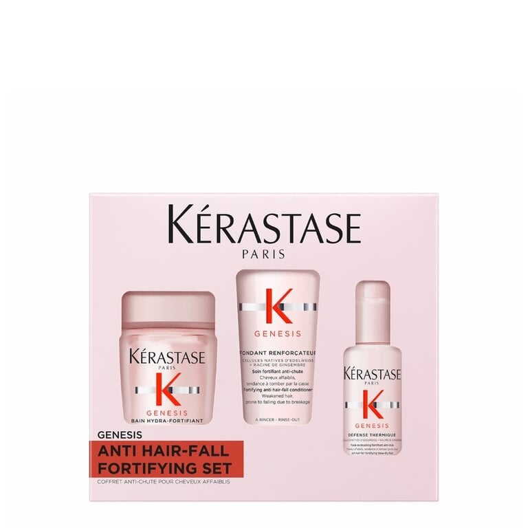 Contrez la chute de cheveux due à la casse avec le trio découverte "Genesis" de Kérastase. Cette alliance de trois formules expertes est le rempart idéal contre la fragilité capillaire. Spécialement développée pour les cheveux affaiblis, elle fortifie la fibre de la racine jusqu'à la pointe, lui conférant une densité et une résistance immédiates. Vos cheveux sont fortifiés, résistent mieux à la casse, et affichent une densité et une beauté naturelle, pour une santé qui se voit.