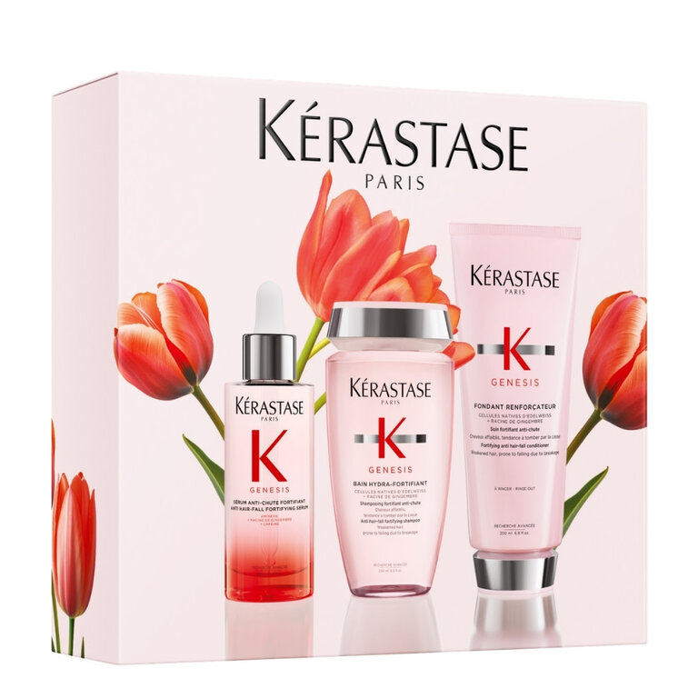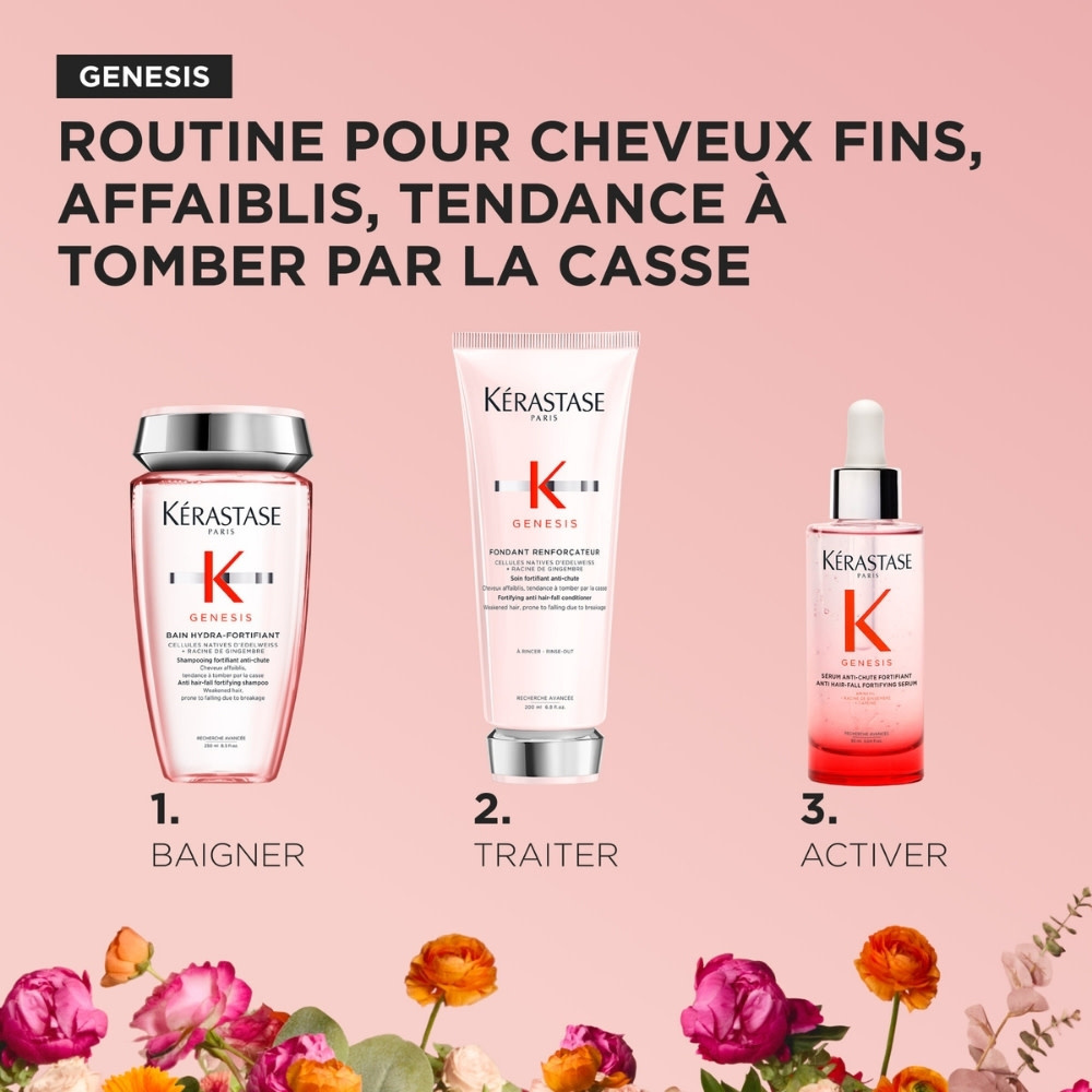 Le trio Genesis de Kérastase signe l’avènement d'une chevelure résiliente face à la chute due à la casse. Ce rituel d’exception déploie une synergie de trois formules fortifiantes conçues pour ancrer la fibre de la racine à la pointe. Une métamorphose immédiate pour une matière dense, vigoureuse et protégée des dommages quotidiens.