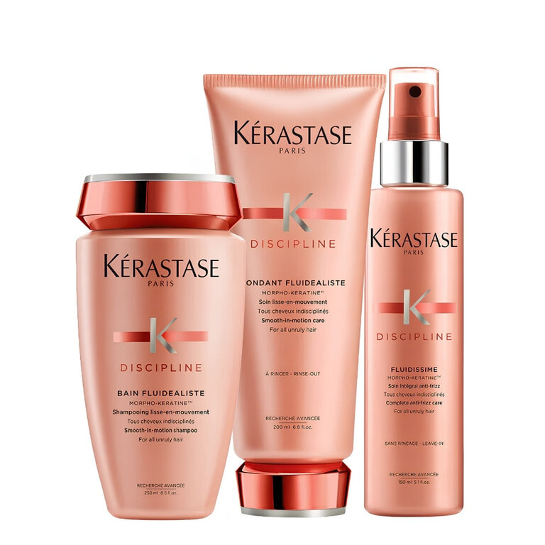 Évaluer Trio anti-frisottis pour cheveux fins à mi-épais Discipline avec Bain Fluidealiste, Fondant Fluidealiste et Spray Fluidissime (250ml/8.5oz, 200ml/6.8oz, 150ml/5.1oz)