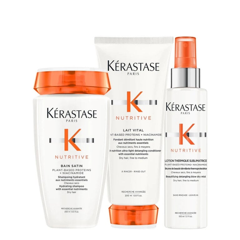 Évaluer Trio hydratant pour cheveux fins à moyens Nutritive avec Bain Satin, Lait Vital et Lotion Thermique Sublimatrice (250ml/8.5oz, 200ml/6.8oz, 150ml/5.1oz)