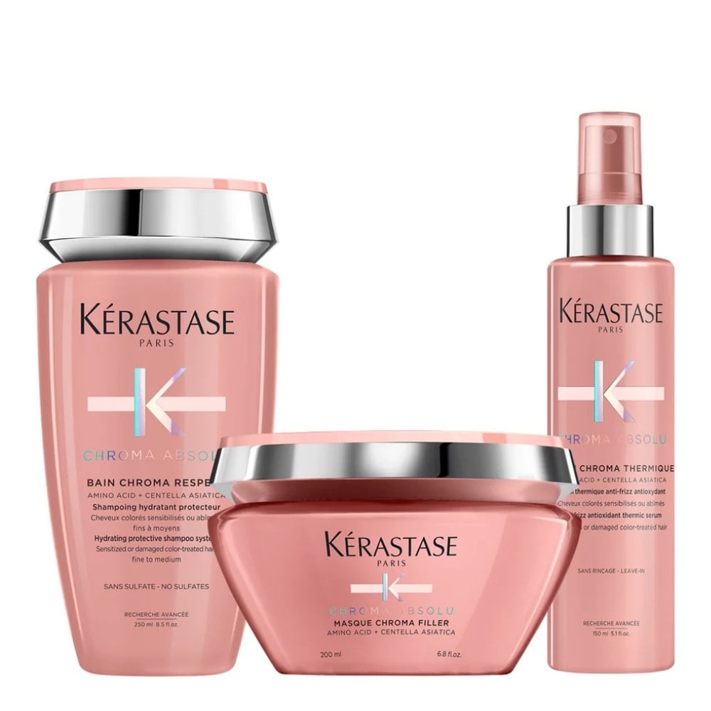 Évaluer Trio réparation en profondeur pour cheveux colorés Chroma Absolu avec Bain Chroma Respect, Masque Chroma Filler et Sérum Chroma Thermique (250ml/8.5oz, 200ml/6.8oz, 150ml/5.1oz)