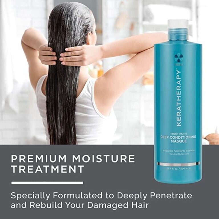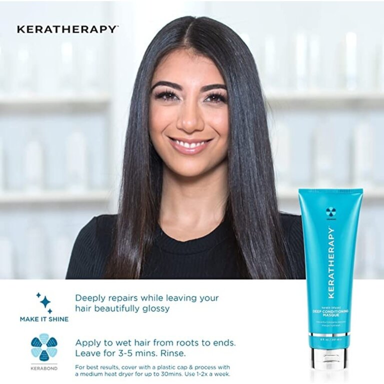 Le traitement nourrissant et hydratant intense "Deep Conditioning Masque" de Keraherapy est formulé à base d'huiles de jojoba, de noix et de châtaignier qui pénètre profondément dans les cheveux, pour une hydratation inégalée.