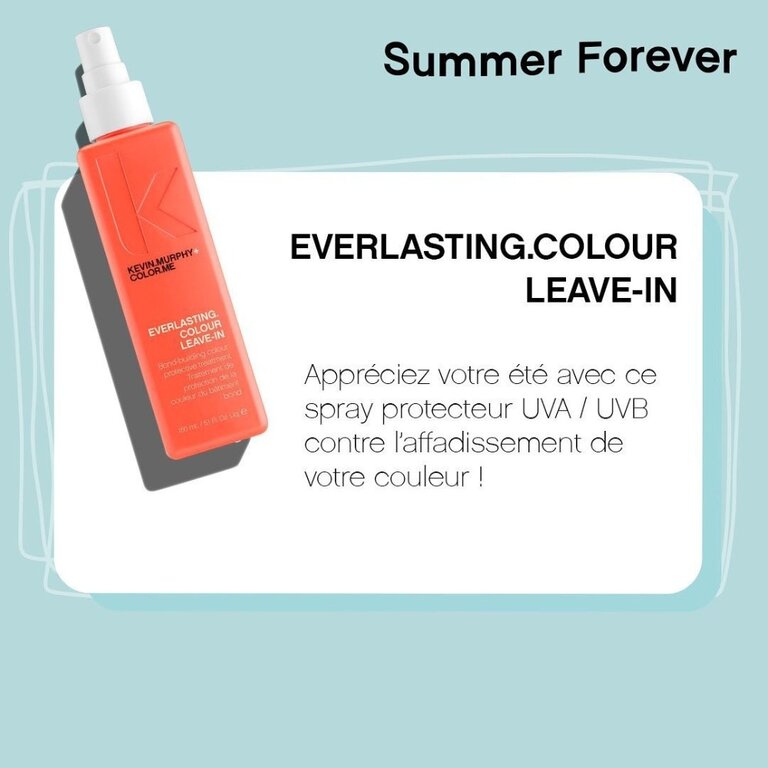 Le traitement protection couleur sans rinçage EVERLASTING.COLOUR LEAVE-IN par KEVIN.MURPHY est un spray léger qui traite les cheveux de l'intérieur, renforçant leur résistance pour des cheveux améliorés, plus forts et plus sains. Sa formule protectrice préserve l’éclat de la couleur et protège les cheveux des facteurs de stress environnementaux tout en les nourrissant, les hydratant et les réparant.