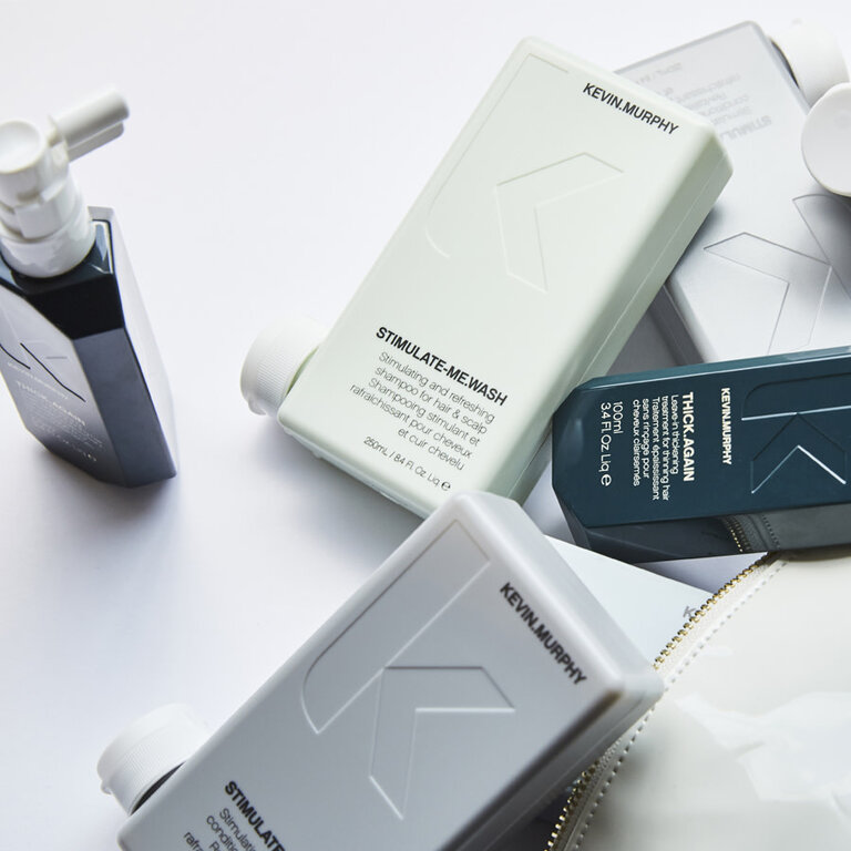 Suivez avec le revitalisant STIMULATE-ME.RINSE et terminez avec le traitement THICK.AGAIN par KEVIN.MURPHY.