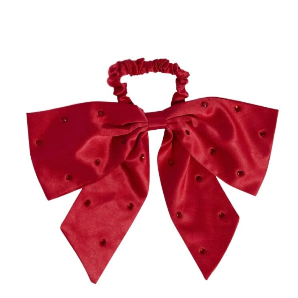 S'inscrireChouchou avec nœud en strass "Satin & Rhinestone Bow Scrunchie" - Rouge