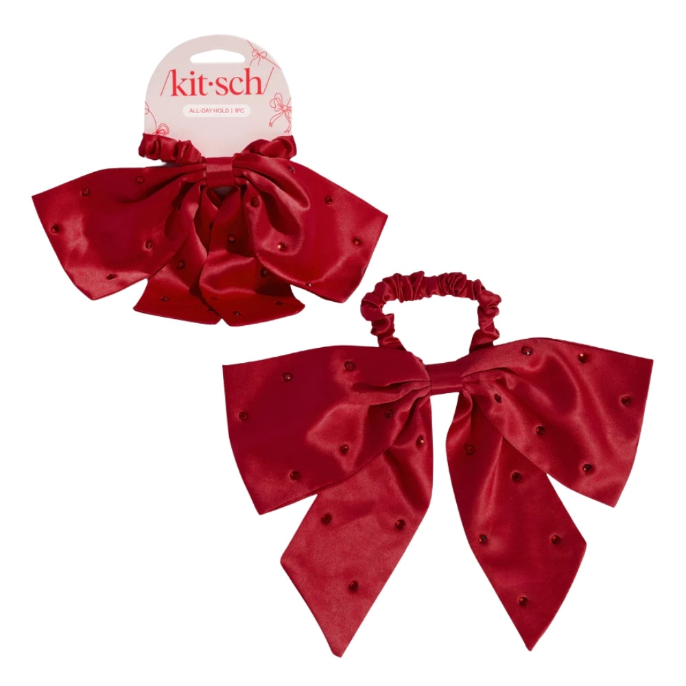 Osez l'accessoire qui attire tous les regards ! Le chouchou en satin rouge luxueux "Satin & Rhinestone Bow Scrunchie" de Kitsch est couronné d'un nœud en strass scintillant. Il offre la dose d'audace parfaite pour les événements ou le glamour de tous les jours, tout en s'adaptant avec aisance à n'importe quelle texture de cheveux.