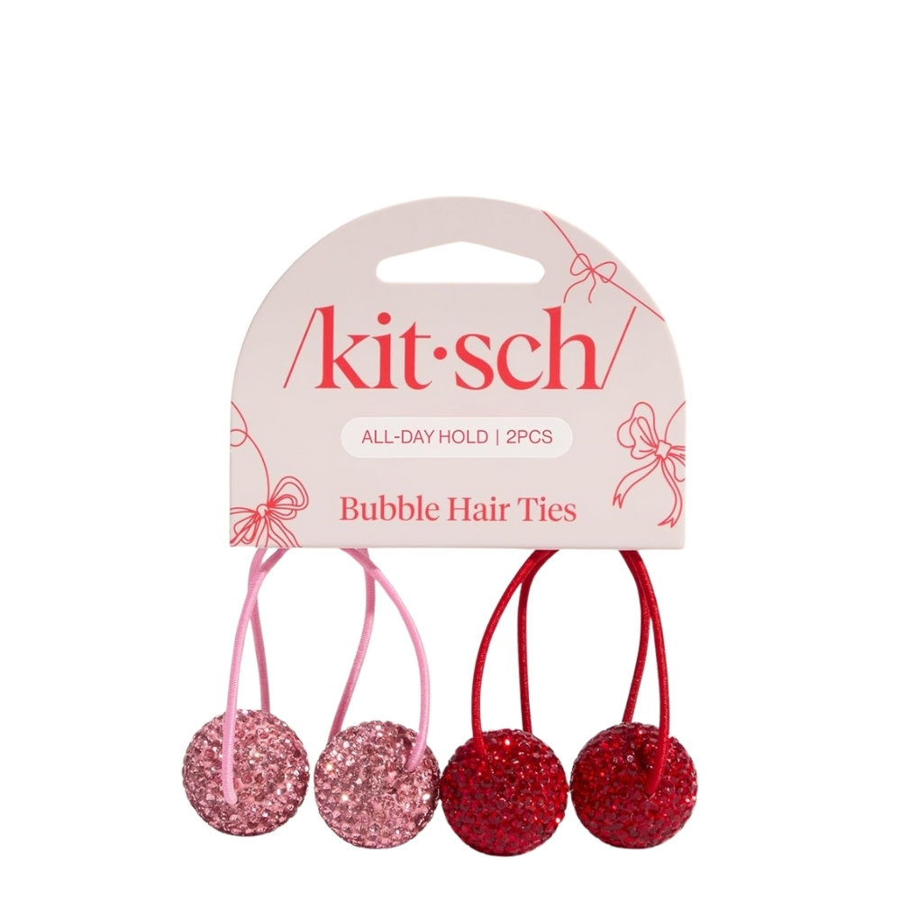Intégrez une touche festive à votre look grâce aux élastiques à cheveux "Bubble Hair Ties" rouge et rose de Kitsch. Leurs teintes vives et leur texture unique créent un jeu de contrastes instantané, conférant une ambiance de célébration immédiate à vos coiffures. Ces accessoires ultra-polyvalents maintiennent efficacement les tresses, les demi-queues ou les chignons, ajoutant une vibrante touche d'originalité et de coquetterie à votre style.