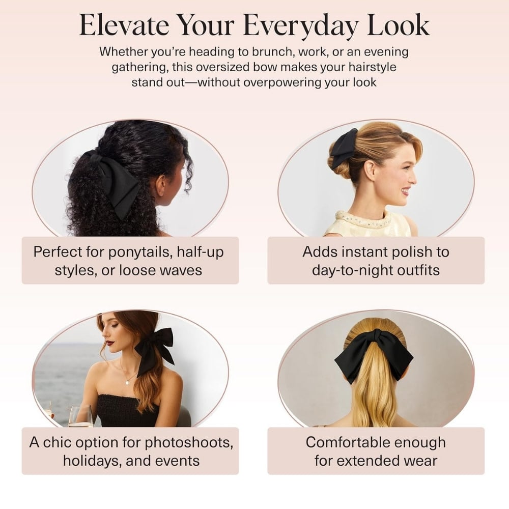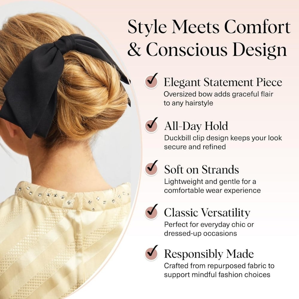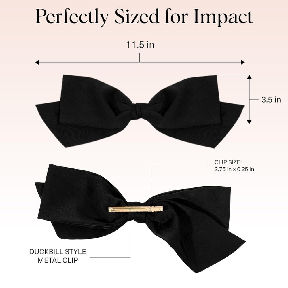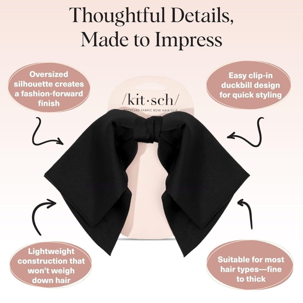 Sublimez votre style avec l'accessoire parfait : la pince à nœud en tissu "Bow Hair Clips" noire de Kitsch. Son nœud surdimensionné confère instantanément une touche de glamour et de mystère à votre look. Grâce à sa pince dissimulée, elle garantit une tenue infaillible, vous permettant de briller et de bouger en toute liberté. En un seul geste, atteignez le summum du raffinement.