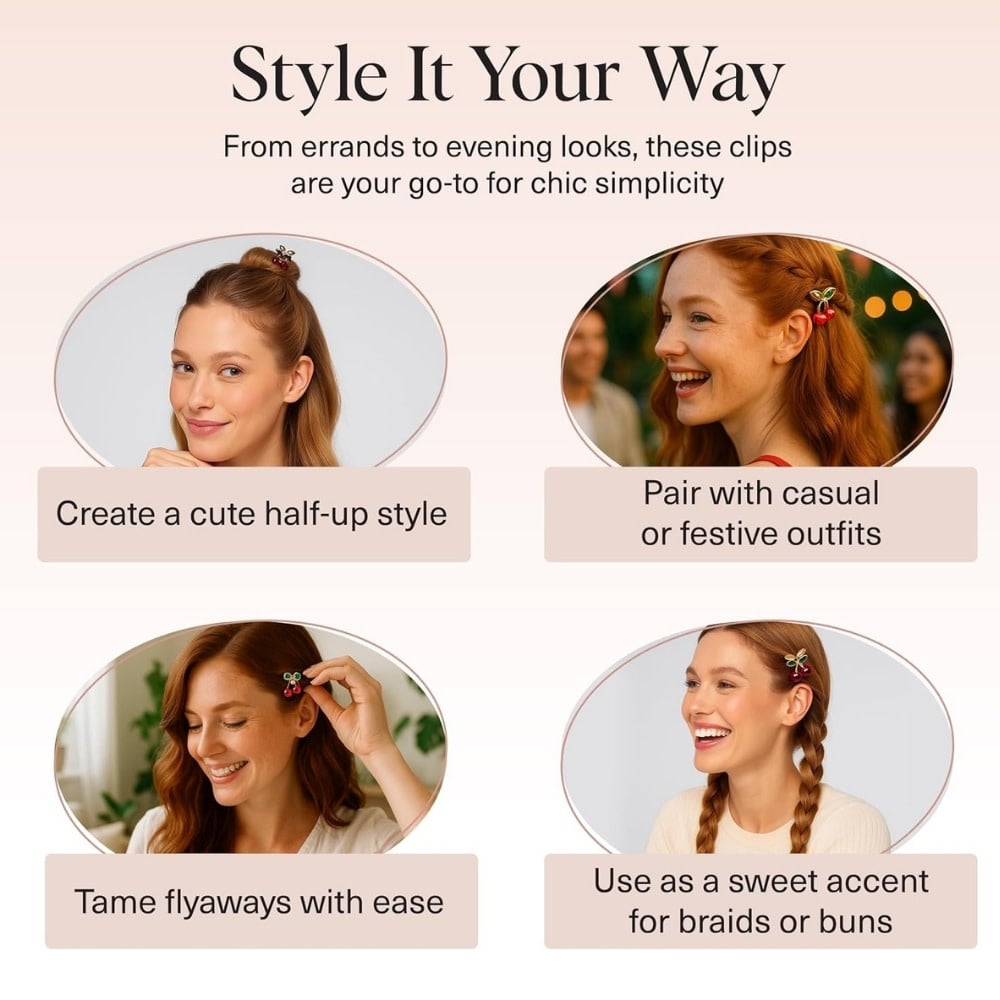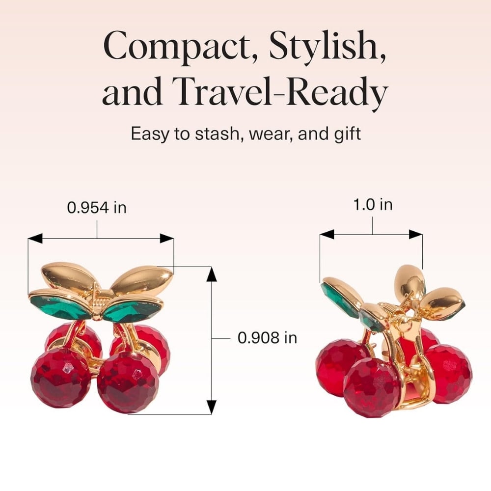 Adoptez un style raffiné et tendance en quelques secondes grâce à cet accessoire pensé comme un bijou. Les mini-pinces à cheveux cerise "Rhinestone Claw Clips" de Kitsch subliment votre coiffure grâce à leur design incrusté de strass. À la fois fonctionnelles pour un maintien optimal et dotées du charme précieux d'un bijou, elles s'imposent comme le détail parfait pour parfaire votre look.