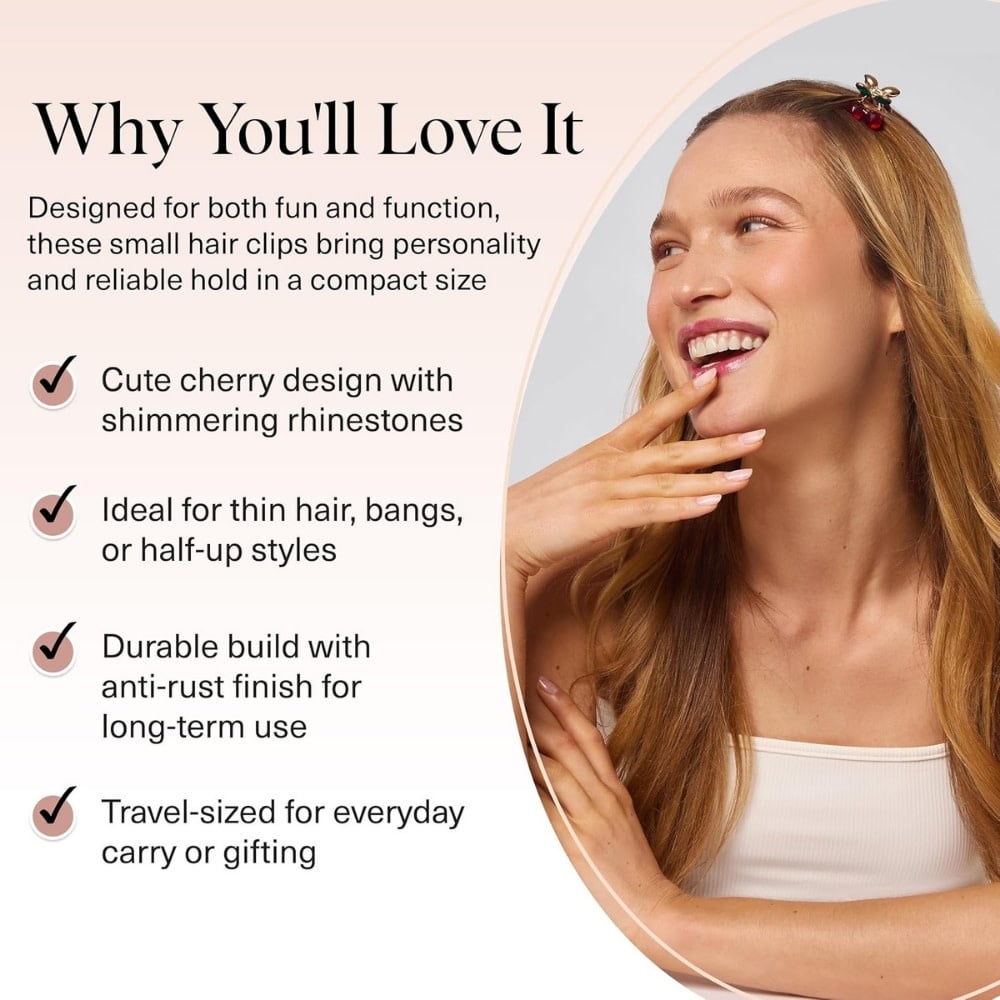 S'inscrirePinces à cheveux mini "Rhinestone Claw Clips" - Cerise (2/Paquet)
