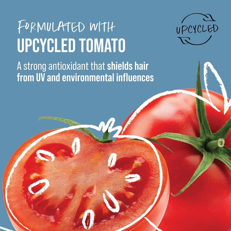 - Tomate issue du surcyclage : Connue comme un puissant antioxydant, elle offre une défense robuste contre les dommages causés par les rayons UV et les facteurs de stress environnementaux, aidant ainsi à préserver la santé et l'éclat des cheveux.