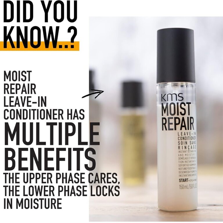Vous en avez assez des cheveux secs, emmêlés et difficiles à coiffer ? Le revitalisant sans rinçage "MoistRepair" de KMS est votre solution pour une chevelure douce, hydratée et facile à démêler. Ce soin sans rinçage enrichi en agents nourrissants revitalise en profondeur vos cheveux sans les alourdir. Sa formule biphasée démêle instantanément les nœuds et les frisottis, laissant vos cheveux doux, soyeux et faciles à coiffer. Parfaitement adapté aux cheveux secs, abîmés ou fragilisés, ce revitalisant sans rinçage est un véritable atout beauté pour votre routine capillaire.