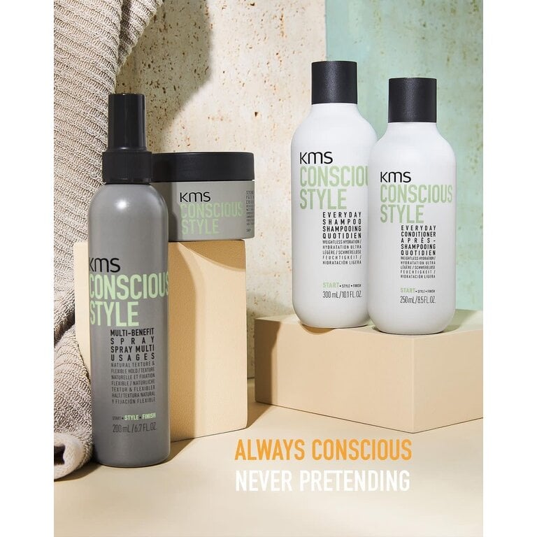 Rehaussez la beauté de vos cheveux au quotidien avec le spray multi-usages "Conscious Style Multi-Benefit Spray" de KMS. Ce spray coiffant léger facilite le coiffage et renforce la texture naturelle de vos cheveux pour un look impeccable. Parfaitement adapté à tous les types de cheveux, il offre une tenue flexible qui dure toute la journée tout en réduisant les frisottis et en protégeant vos cheveux contre la chaleur du séchoir et du fer à lisser. Sa formule enrichie en copolymère I/E/H et en huile d'avoine protège les cheveux contre les agressions extérieures et apaise le cuir chevelu. Les cheveux sont éclatants de santé, protégés et sublimés au naturel.