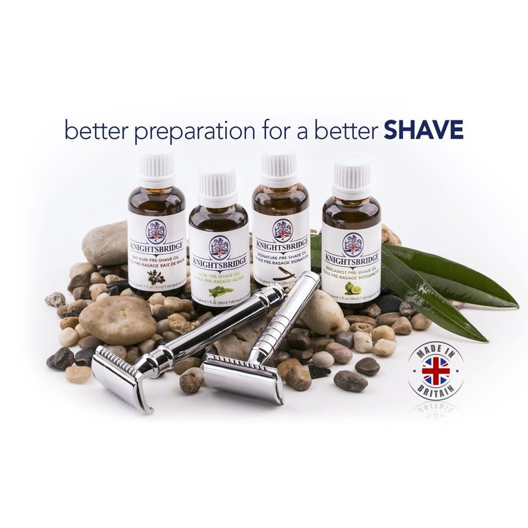 Améliorez votre rasage avec l’huile de pré-rasage d'aloe de knightsbridge. Votre peau se sentira plus douce et plus belle que jamais, vous apprécierez le parfum botanique subtil de notre huile de pré-rasage d’eau d’aloe.