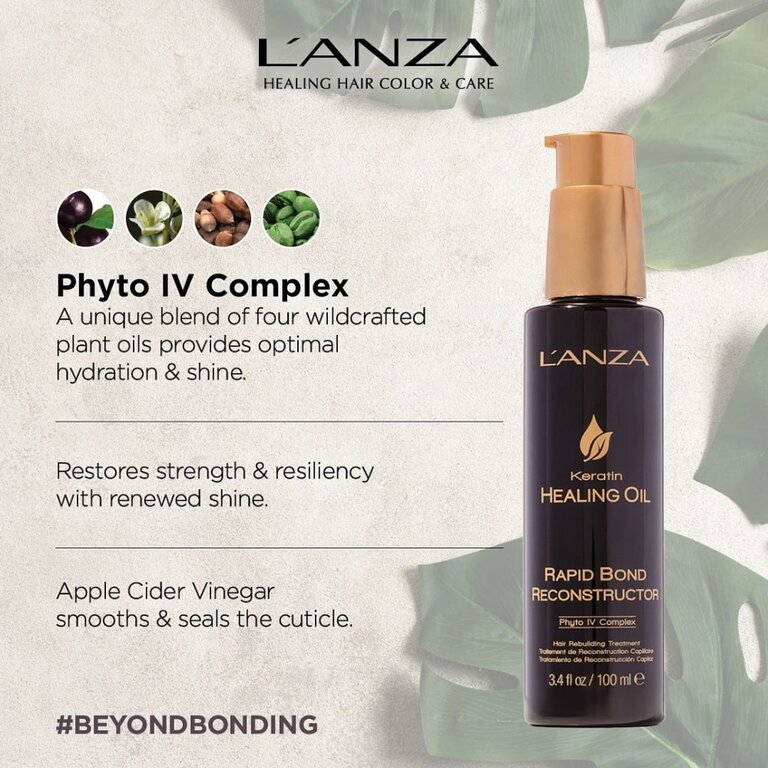 Le traitement reconstructeur "Keratin Healing Oil Rapid Bond Reconstructor" de l'Anza est un soin cicatrisant et réparateur qui agit sur la structure interne du cheveu abîmé. Il restaure les liens rompus pour dévoiler une chevelure en meilleure santé. Son utilisation aide à prévenir la casse des cheveux et les pointes fourchues tout en renouvelant la résilience et l'intégrité des cheveux endommagés. Les cheveux sont plus doux, brillants et souples.