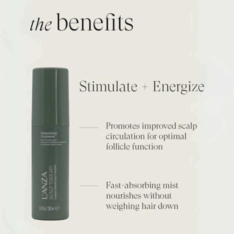 Maximisez vos résultats en l'associant au shampoing stimulant et au revitalisant équilibrant de la collection "Scalp Therapy" par L'Anza.