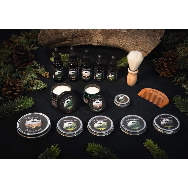 Les beurres hydratants, après-rasage du barbu des bois sont faits à la main à partir d’un mélange de beurre de karité et d’huiles essentielles, qui ont des propriétés antiseptiques, rafraichissantes et apaisantes.