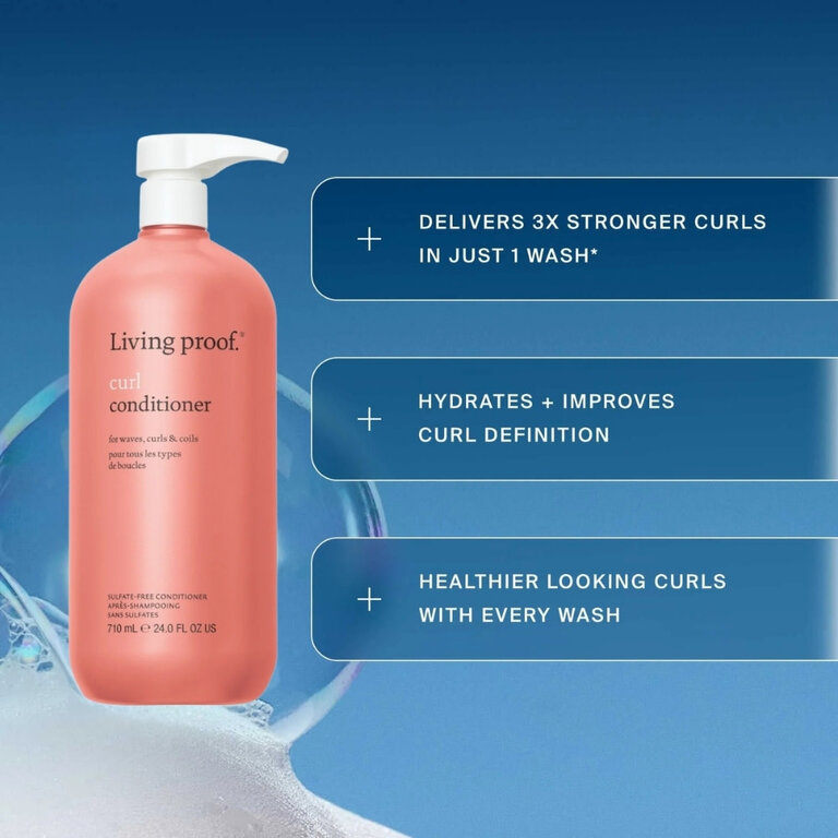 Le revitalisant sans sulfates "Curl" de Living Proof est conçu pour hydrater et démêler. Il définit les boucles dès la sortie de la douche, rend les boucles 3x plus fortes et les transforme pour qu’elles paraissent visiblement plus saines après un seul lavage.