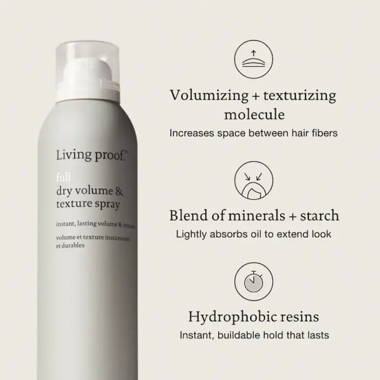 Le vaporisateur volume et texture "Full Dry Volume & Texture Spray" de Living proof est scientifiquement conçu pour composer n'importe quel look, ce styler de finition donne aux cheveux un volume, une texture et une tenue douce immédiats et durables en seulement quelques pulvérisations.