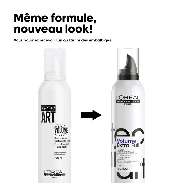 La mousse professionnelle "Tecni.Art Volume Extra Full" de L'Oréal Professionnel est votre alliée volume pour toutes les occasions. Que vous souhaitiez créer des boucles rebondies, un brushing XXL ou simplement donner du corps à vos cheveux, cette mousse ultra-performante vous garantit un résultat impeccable et une tenue à toute épreuve.