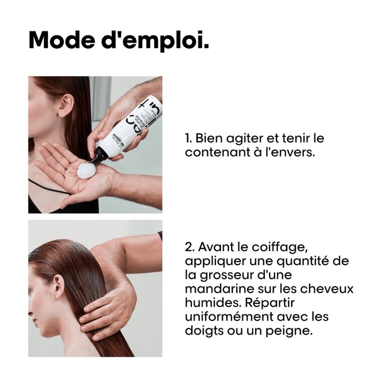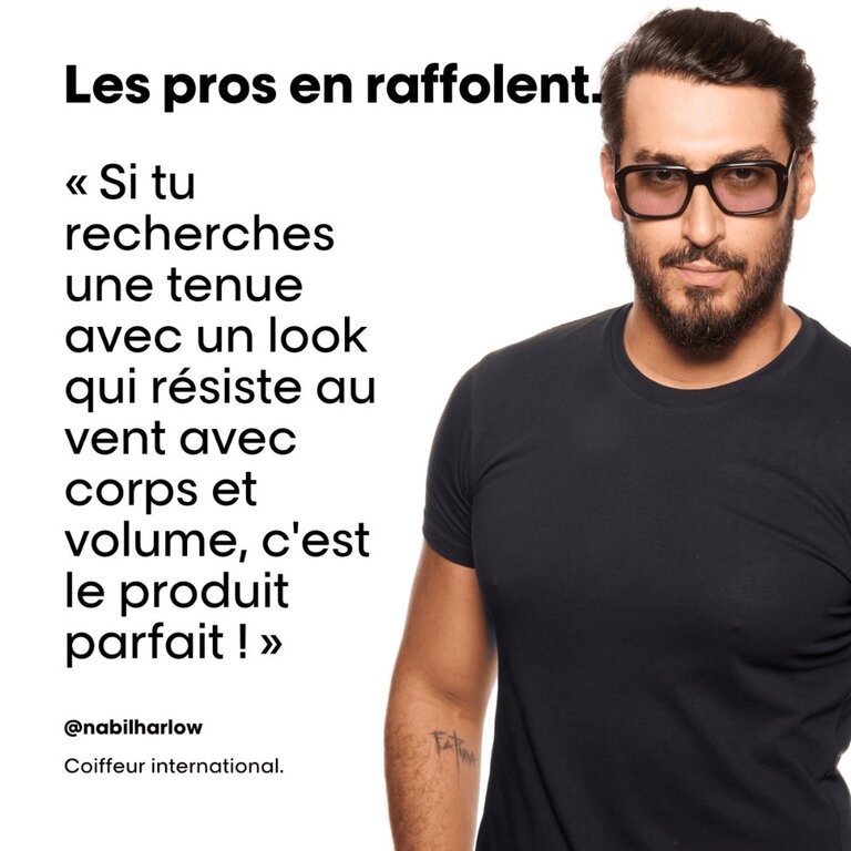 Sa texture aérienne et ses actifs légers enveloppent chaque mèche, fixent votre coiffure sans la rigidifier et créent un effet de densité immédiat. Vos cheveux ont un mouvement naturel et une tenue parfaite, sans effort.