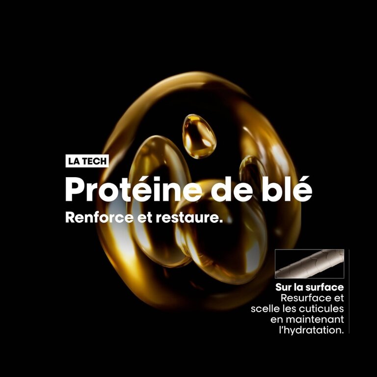Cet après-shampoing hydratant pénètre au cœur de la fibre capillaire pour combler les brèches et renforcer la structure du cheveu. Les protéines de blé et de quinoa doré, riches en acides aminés essentiels, nourrissent intensément les cheveux et leur redonnent de la souplesse et de la vitalité. Dès la première utilisation, vos cheveux sont visiblement plus lisses, plus brillants et doux au toucher. La chevelure est revitalisée, souple et facile à coiffer.