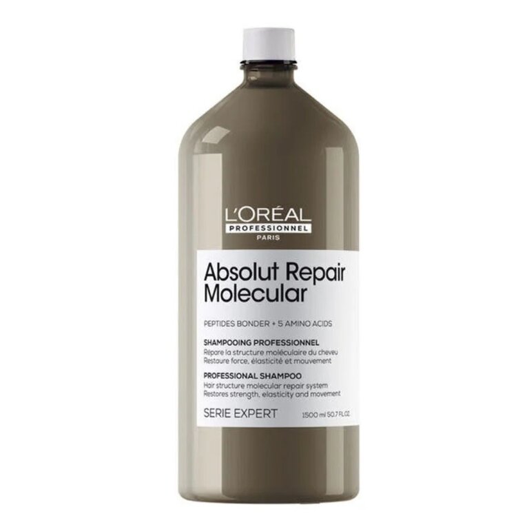 Du haut de ses 6 brevets, le shampoing "Absolut Repair Molecular" de L'Oréal Professionnel est formulé avec des peptides liants et un mélange de 5 acides aminés qui permettent de réparer la structure macro-moléculaire des cheveux en injectant des peptides nouvelle génération. Sa formule inspirée des soins de la peau conduit donc à réparer des dommages que l'ont croyait, jusqu'à maintenant, irréversible. Sans sulfate, sa texture luxueuse se transforme en une mousse riche, qui nettoie, démêle les cheveux et offre un haut niveau de soin. Les cheveux sont plus forts et nourris, avec une élasticité optimisée, un mouvement amélioré et 86% de douceur en plus.