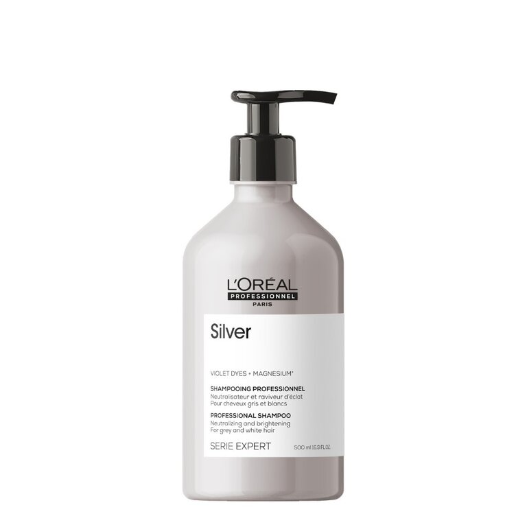 Le shampoing neutralisant et raviveur d'éclat "Silver" de L'Oréal Professionnel est le secret d'une chevelure argentée éclatante. Enrichi en pigments violets et en magnésium acétate, il neutralise les reflets jaunes indésirables tout en apportant brillance et douceur. Sa formule professionnelle, adaptée à toutes les natures de cheveux, revitalise en profondeur et préserve la couleur naturelle, pour des cheveux argentés éclatants de santé et de beauté.