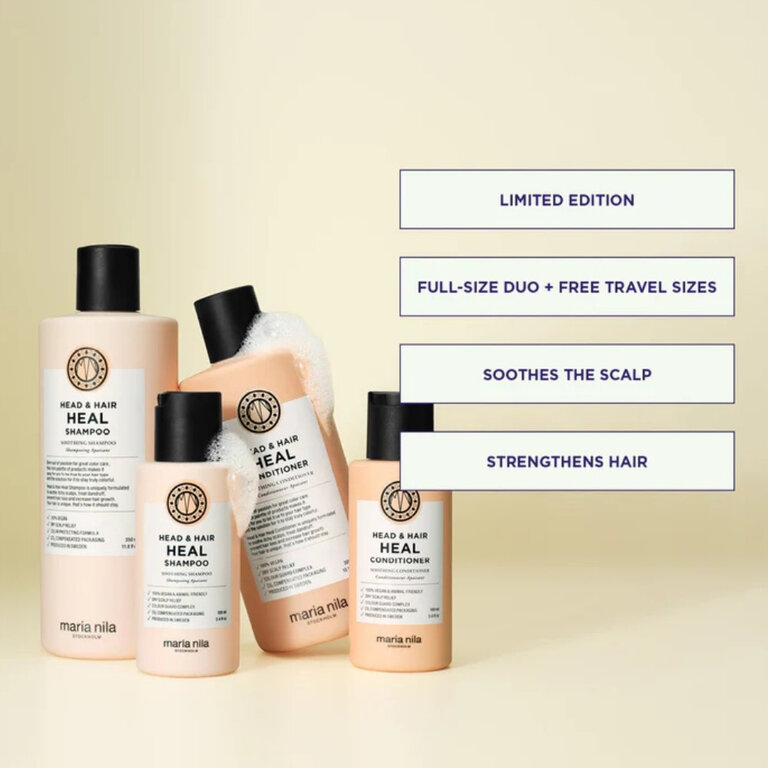 La réponse suédoise aux déséquilibres du cuir chevelu. L'ensemble "Head & Hair Heal" de Maria Nila mobilise des actifs apaisants et hydratants pour rétablir l'équilibre cutané instantanément. Cette routine professionnelle agit contre les pellicules et l'inconfort, redonnant vitalité et santé à la barrière capillaire. L'essentiel du soin scandinave : un cuir chevelu sain et une base fortifiée.