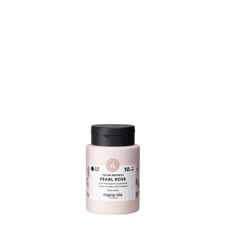 Le masque de couleur "Color Refresh" 10.26 Pearl Rose de Maria Nila est un soin nourrissant et colorant aux pigments semi-permanents conçu pour raviver et intensifier les reflets rosés subtils des cheveux clairs.