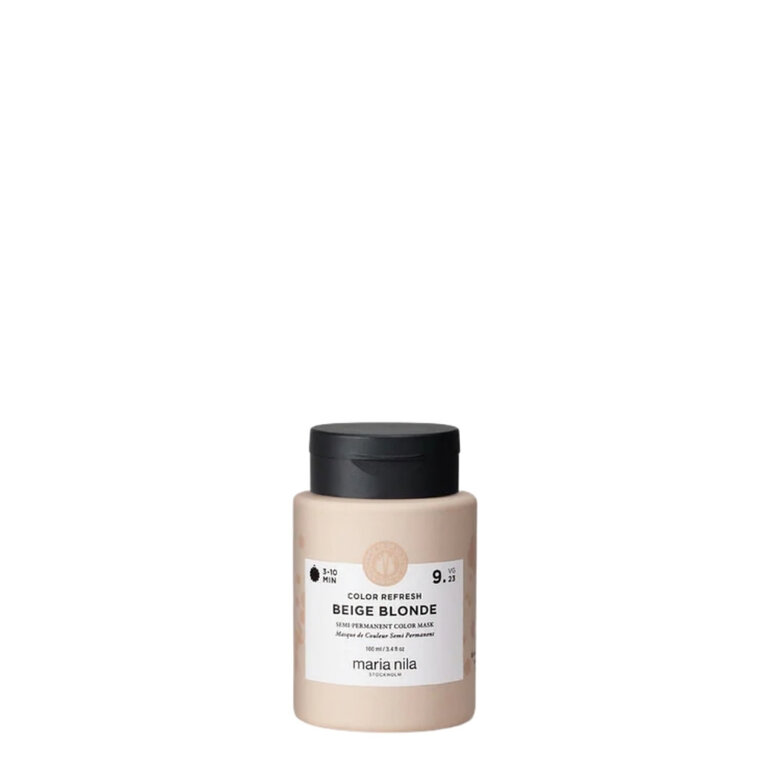 Le masque de couleur "Color Refresh" 9.23 Beige Blonde de Maria Nila est un soin nourrissant et colorant aux pigments semi-permanents conçu pour raviver et intensifier les reflets beige sable pour un fini légèrement plus foncé.