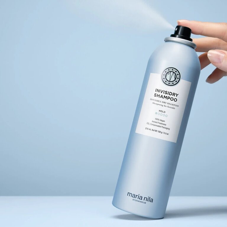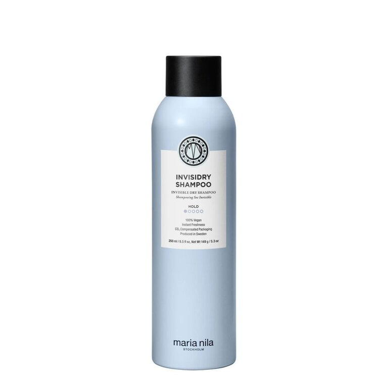 Le shampoing sec invisible "Invisidry Shampoo" de Maria Nila est un spray poudré léger qui rafraîchit rapidement les cheveux entre deux lavages sans laisser de traces. Sa formule à base d'amidon de riz absorbe facilement les huiles capillaires naturelles du cuir chevelu et des cheveux, ce qui donne un aspect et une sensation de chevelure nouvellement lavés. L'Invisidry offre une tenue légère et comme son nom l'indique, il ne laisse aucune trace de produit dans les cheveux grâce à sa formule innovante. Par conséquent, il fonctionne parfaitement sur toutes les couleurs de cheveux, des plus c;airs aux plus foncés.
