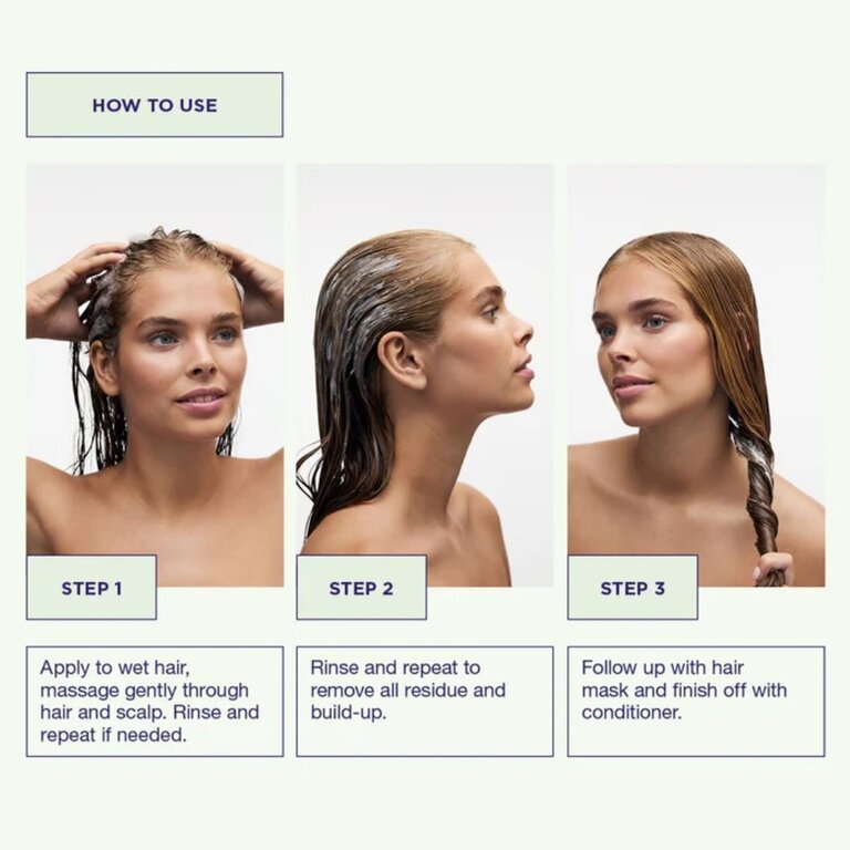 Appliquez sur cheveux mouillés et massez doucement les cheveux et le cuir chevelu.
