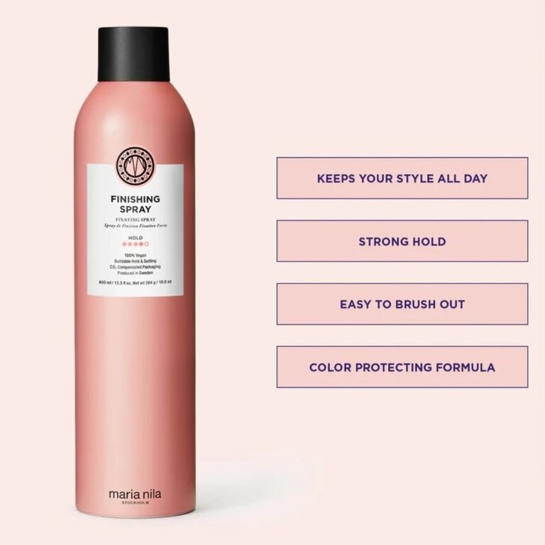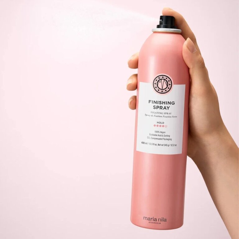 Le spray de finition fixation forte "Finishing Spray" de Maria Nila est un fixatif capillaire doux, mais efficace, conçu pour offrir une tenue forte et durable à tous les types de coiffures