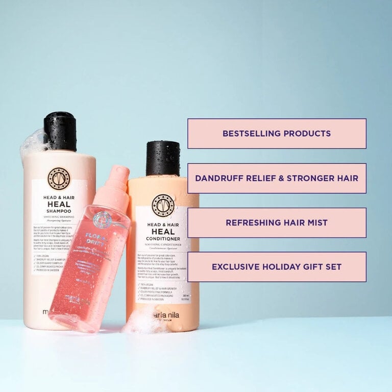 Transformez la santé de votre cuir chevelu grâce au trio apaisant "Head & Hair Heal" de Maria Nila. Enrichi d'un complexe d'ingrédients apaisants, fortifiants et hydratants, ce rituel beauté soulage instantanément les sensations d'inconfort et contribue à rétablir l'équilibre naturel du cuir chevelu. Il aide également à prévenir la formation de pellicules et à maintenir un cuir chevelu sain et revitalisé.