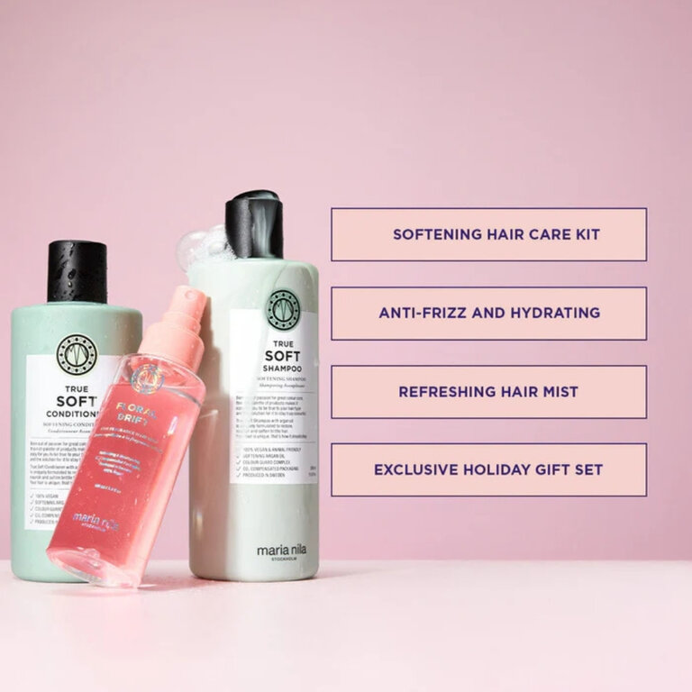 Luttez contre la sécheresse capillaire grâce au trio assouplissant "True Soft" de Maria Nila, conçu sur mesure pour tous les types des cheveux naturellement secs. Gorgé d'antioxydants, ce rituel beauté préserve l'hydratation vitale tout en rehaussant l'éclat et la souplesse.