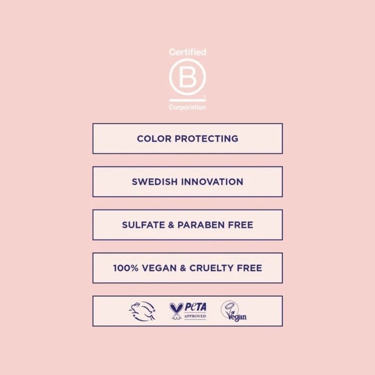 Fidèle aux valeurs de Maria Nila, cette formule 100 % végétalienne est exempte de sulfates et de parabènes. Elle bénéficie des certifications PETA, Leaping Bunny et Vegan Society, garantissant un respect total de l’environnement et du bien-être animal.