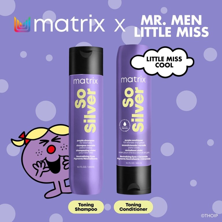 Découvrez le duo neutralisation "So Silver" de Matrix, enrichie de pigments neutralisants calibrés et de céramides, spécialement conçue pour neutraliser avec précision les tons jaunes des cheveux blonds ou gris, pour des résultats visibles en un seul lavage. Les céramides aident à conserver l'hydratation et à renforcer la brillance, pour que les cheveux aient non seulement un aspect vibrant et des tons neutres, mais qu'ils restent également nourris et éclatants.