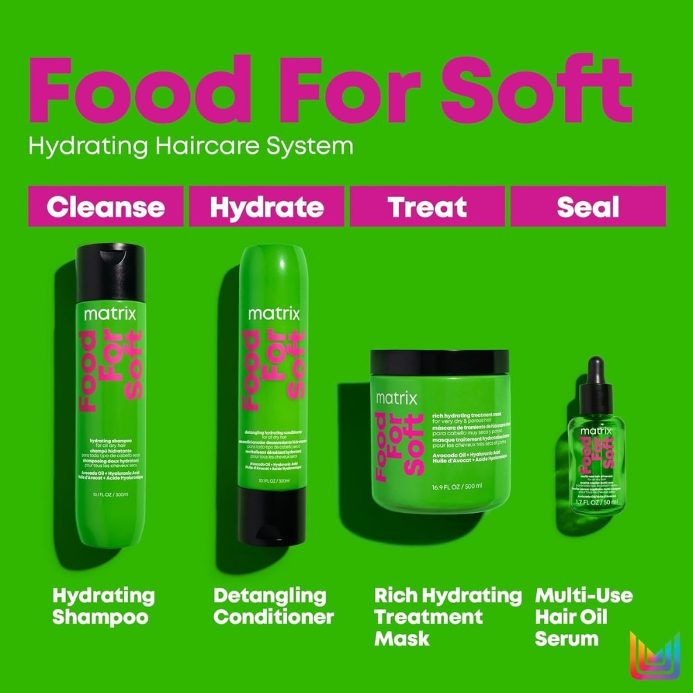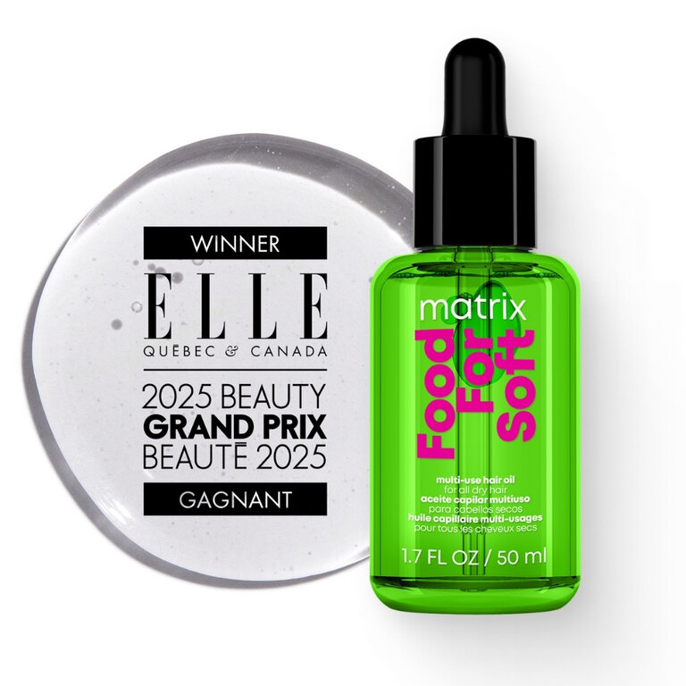 L'huile-sérum capillaire multi-usage "Food For Soft" de Matrix est un soin sans rinçage enrichi d'huile d'avocat et d'acide hyaluronique, qui nourrit et scelle l'hydratation essentielle des cheveux secs pour les rendre plus lisses, plus doux et plus sains tout en fournissant une protection contre la chaleur des outils chauffants.