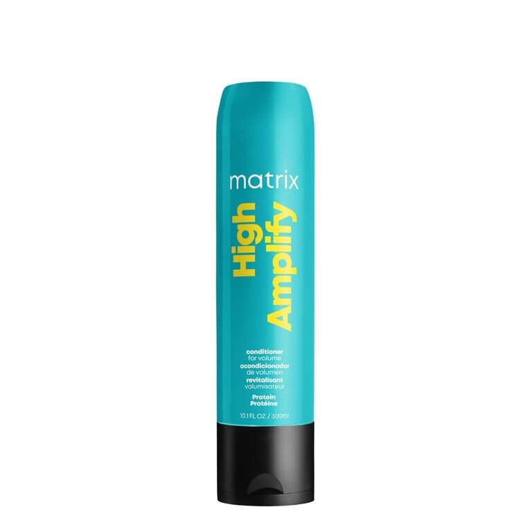 Le revitalisant "High Amplify" de Matrix contenant des protéines, aide à rehausser la structure des cheveux fins et sans corps pour un volume durable.