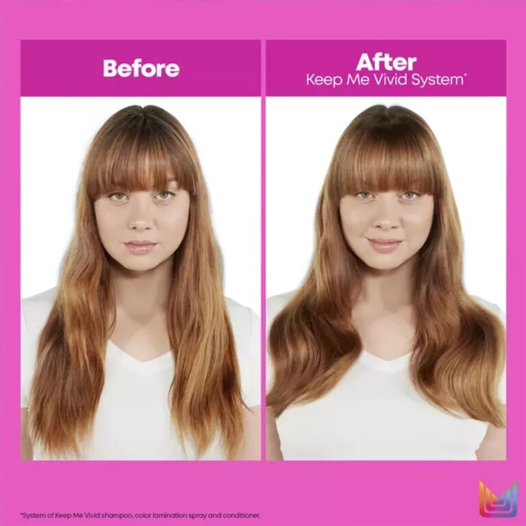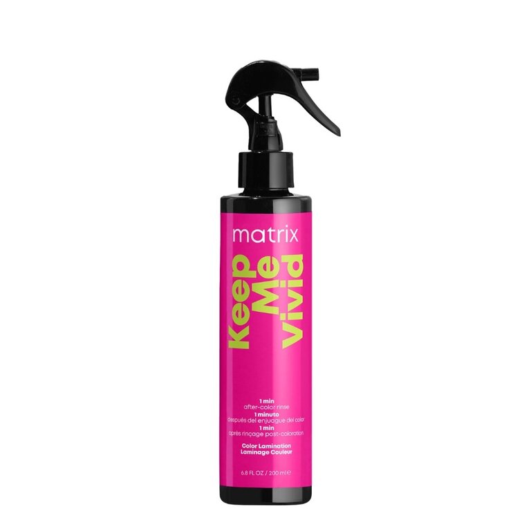 Le traitement laminage couleur sans rinçage "Keep Me Vivid" de Matrix est un soin pour cheveux colorés conçus pour prolonger la couleur avec une brillance améliorée, à utiliser en salon et à domicile. Formulé d'un pH acide, il scelle les pigments de coloration dans la fibre capillaire procurant une coloration aux reflets riches plus durables. Ne redoutez plus le ternissement de la couleur.