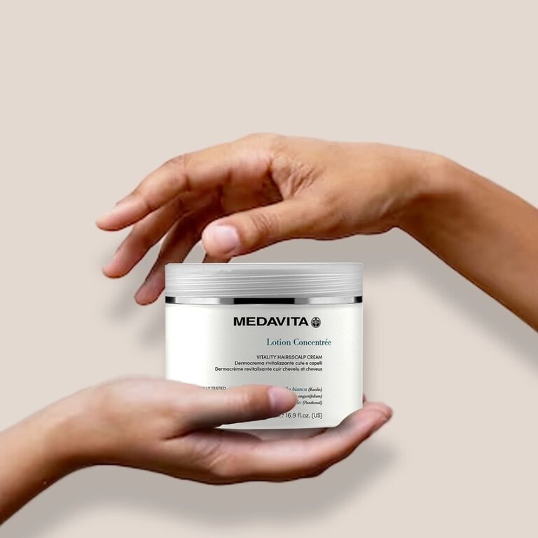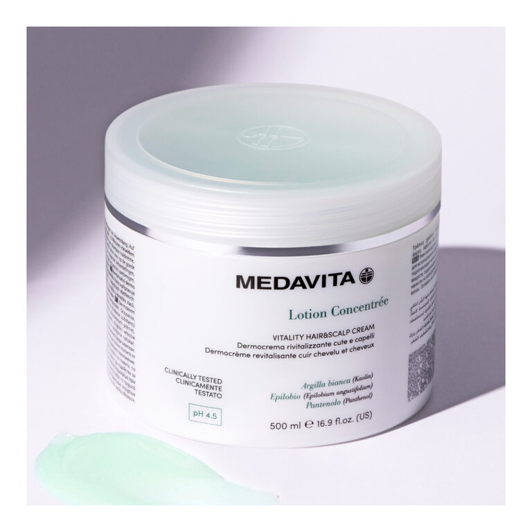 La dermocrème "Lotion Concentrée Vitality Hair&Scalp Cream" pré-shampoing de Medavita revitalise, avec un seul geste et stimule le potentiel du cuir chevelu et des cheveux, des racines aux pointes. Sa formule riche en ingrédients actifs purifie, assainit et prépare le cuir chevelu à recevoir les bienfaits des principes actifs contenus dans les soins suivants. Idéal pour rafraîchir et renforcer les cheveux et le cuir chevelu, elle protège de diverses influences négatives pouvant provoquer des dommages, un dessèchement ou une irritation.